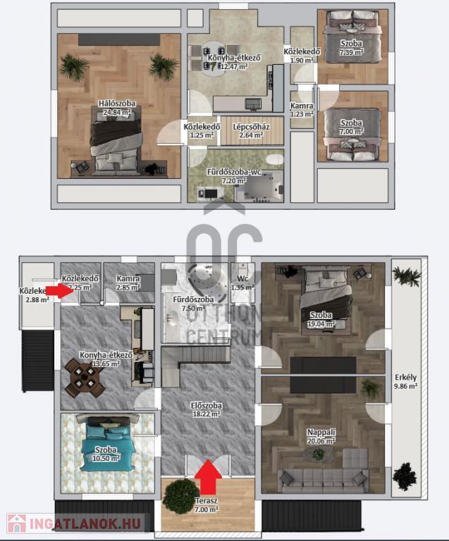 - Az ingaltan alatt található egy teljes értékű garázs, és egy tároló.