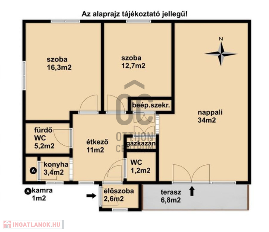 - A 6,8m2 nagyságú terasz déli tájolású.