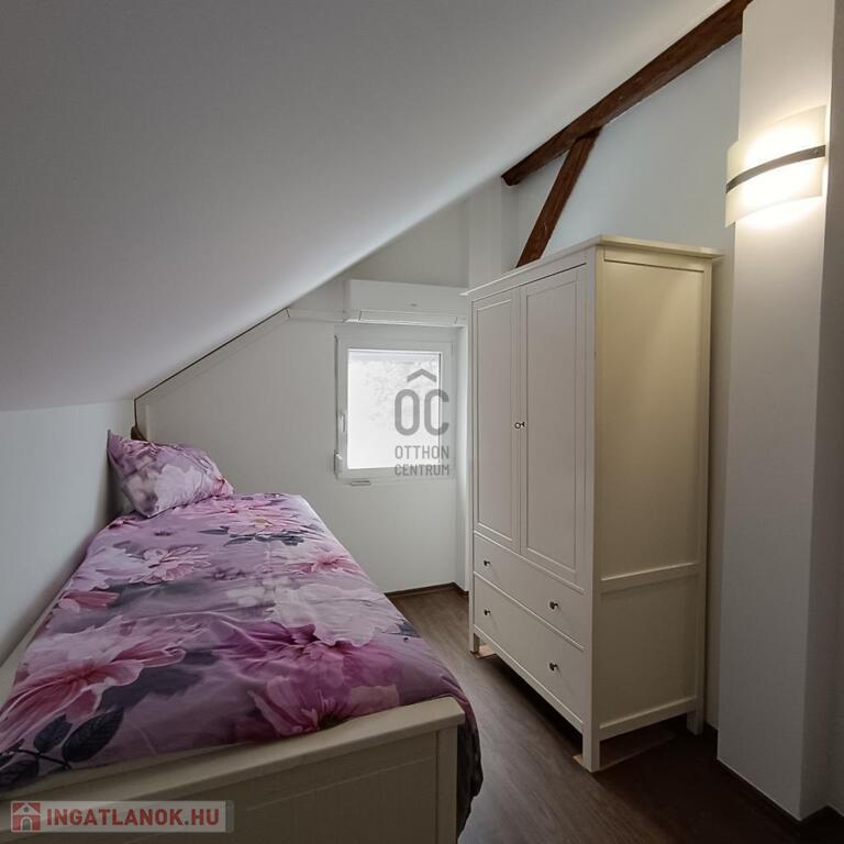 - emelet helyiségei: 1 hálószoba, hatalmas nappali, gardrób, közlekedő, fürdő-WC, gyerekeknek játszó galériás szoba- össz 47 m2