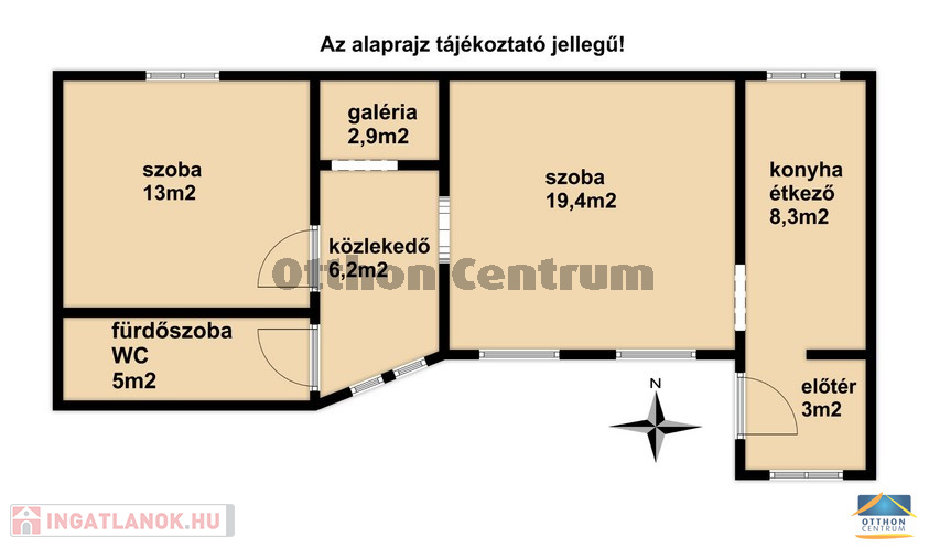 - helyiségei: előtér, konyha + étkező, 2 szoba, egy kis galéria, közlekedő, fürdőszoba