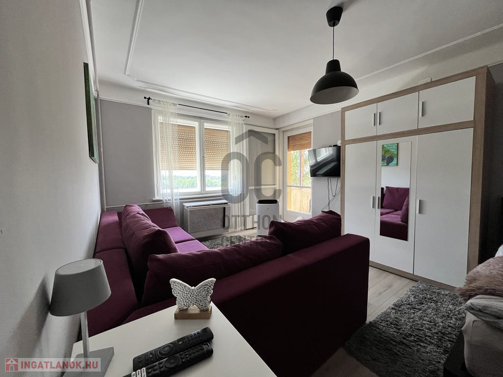 Ez a 3. emeleti lakás, bár csak egy különálló szobával rendelkezik, mégsem kell lemondani semmilyen élettérről! A tágas konyha-étkező biztosít egy társalgót is. Itt akár egy vendéget is el tudunk szállásolni.