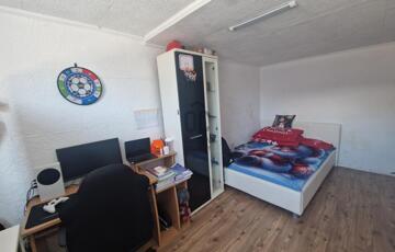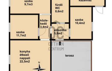 Helyiségek: 3 hálószoba, konyha-étkező-nappali, közlekedő, előszoba, fürdőszoba wc-vel, mosókonyha-kazánház.